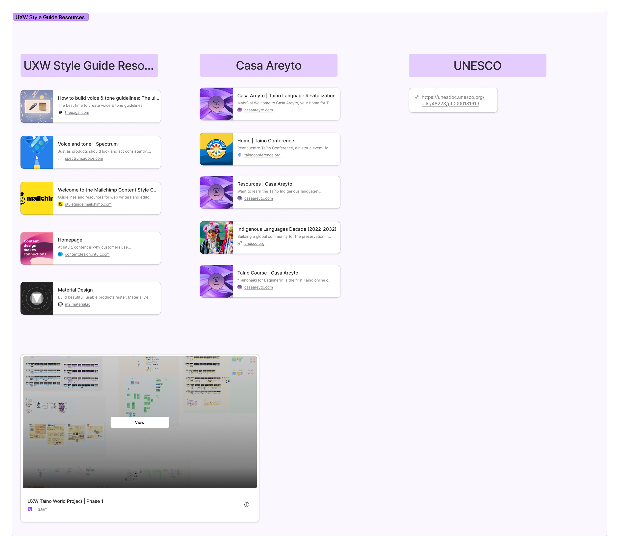 After numerous thorough meetings and discussions, we finally decided on the UX writing style guides. We chose to closely follow the Mailchimp, Intuit, Material Design and Adobe writing systems. In alignment with the client's request to use UNESCO writing guidelines, we also incorporated Taíno writing resources into these systems. The final list of resources is as follows: