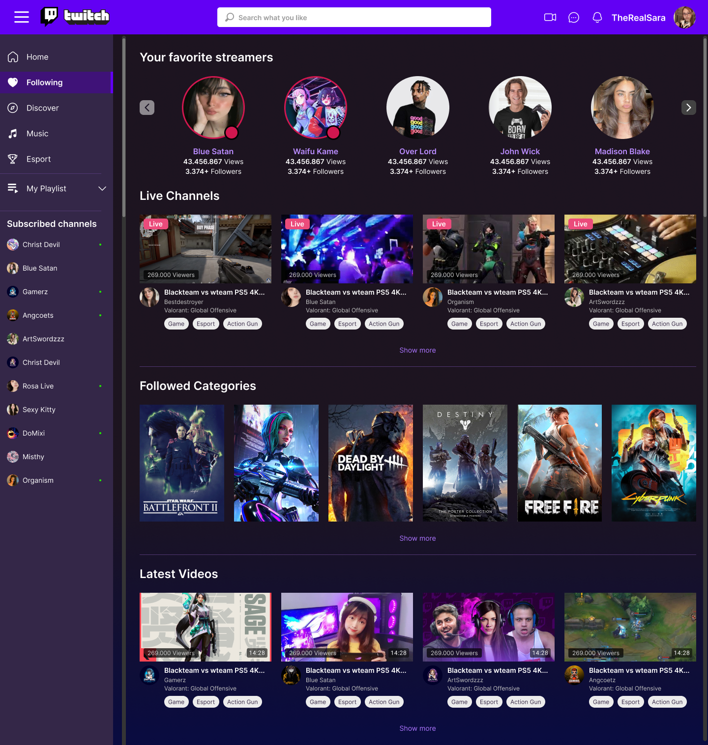 Users can easily find their favorite streamers in the left sidebar, eliminating the need to waste time searching for their favorite livestreams with all the distractions. The sidebar also includes “Categories” and the “Latest Videos”, ensuring users don’t miss any memorable moments.